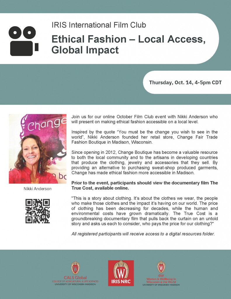 IRIS International Film Club: Ethical Fashion – Local Access, Global Impact October 5, 2021 Register Post navigation << previous postnext post >>